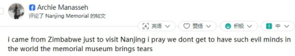 国外网友留言:“我来自津巴布韦,专程来南京参观。我祈祷世界上再也不要有这样邪恶的心灵。这座纪念馆让人潸然泪下。”