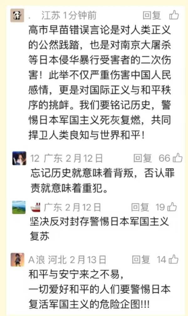 针对高市早苗涉参拜靖国神社言论,我馆发布“江东平” 评论文章,坚决驳斥历史虚无主义。广大网友也纷纷发声,共同守护历史真相。