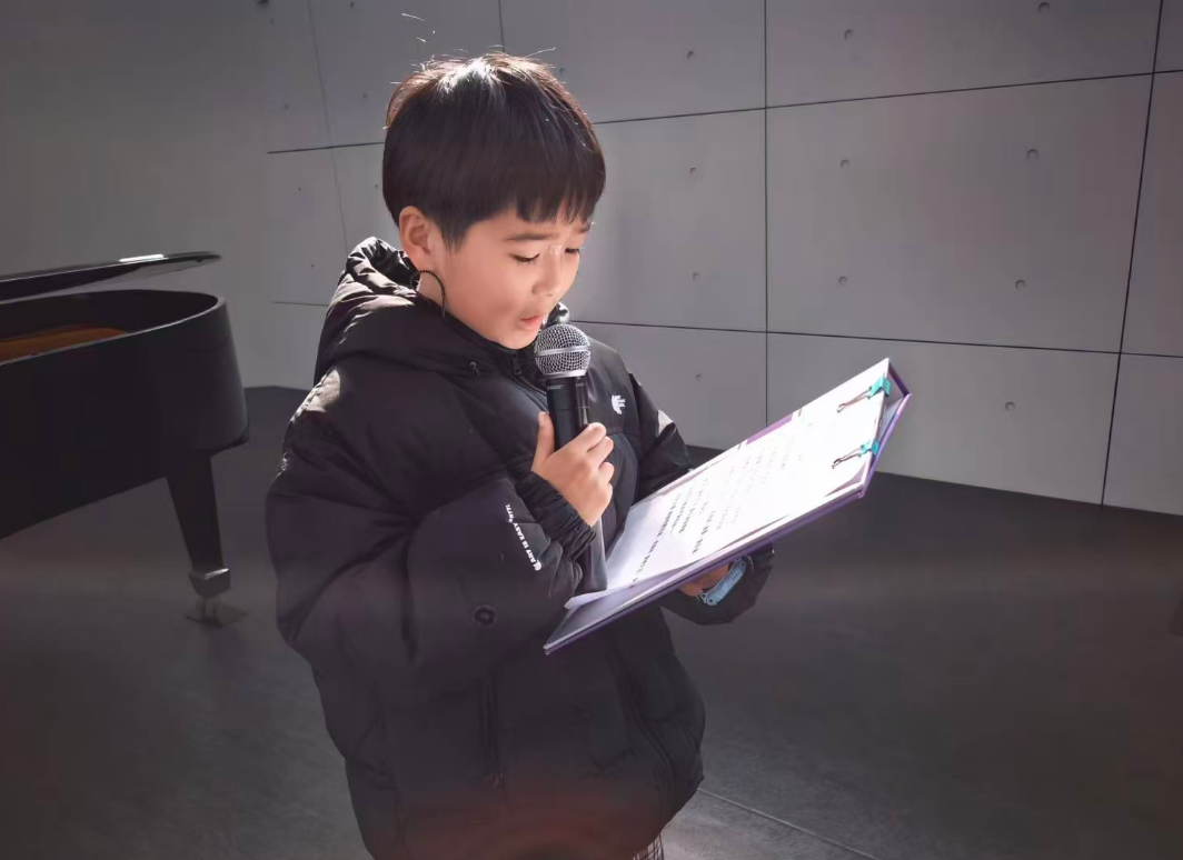今天“和平之声”展演活动的过程中,在志愿者的带领下,很多观众也自愿上台,参与主题诗歌朗诵。其中,来自江西的8岁小朋友朱璟玟主动上台,朗诵了诗歌《紫金草》。“战争真的很可怕,我们一定要爱护和平,还要铭记历史。”虽然年纪小,但朱璟玟的发言却格外有力,她用自己稚嫩的童声,表达出了对历史的敬畏和对和平的向往。