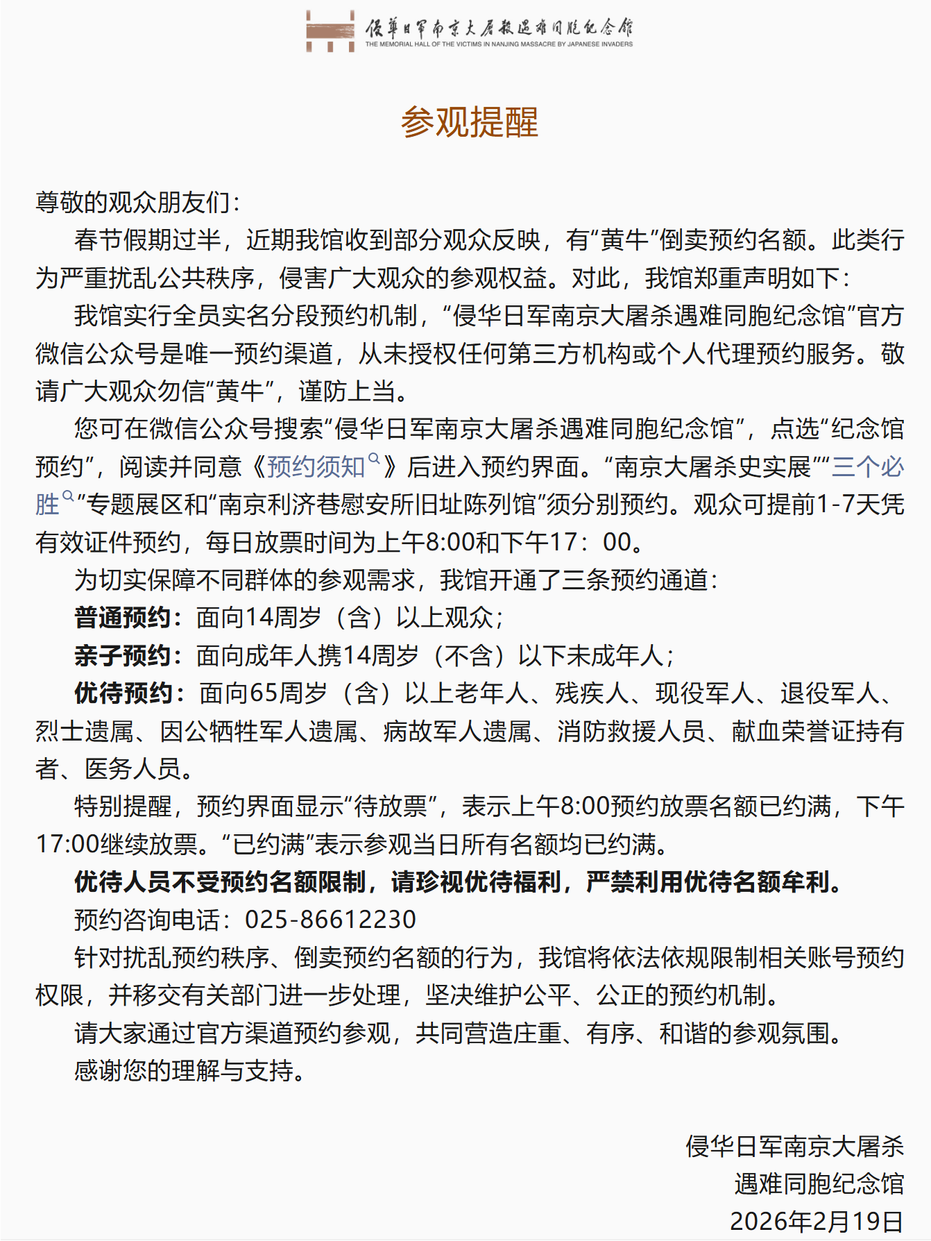 勿信“黄牛”!预约请认准纪念馆官方渠道