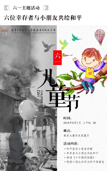 今年“六一”儿童节,纪念馆邀请南京大屠杀幸存者王义隆、岑洪贵、葛道荣、艾义英、石秀英、夏淑琴,以及与他们当年年纪相同的孩子们,共同开展 “讲历史 绘和平”儿童节主题教育活动。