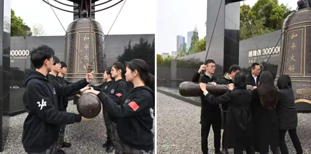8点30分,12名师生代表分成两组撞响和平大钟,在13声庄严肃穆的钟声中铭记历史、祈愿和平。