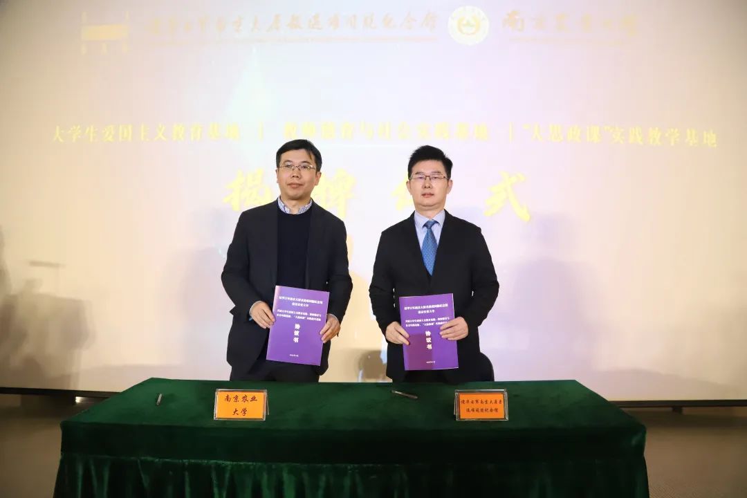 随后,南京农业大学-侵华日军南京大屠杀遇难同胞纪念馆“大思政课”实践教学基地、大学生爱国主义教育基地、教师德育与社会实践基地、共建揭牌仪式正式开始。