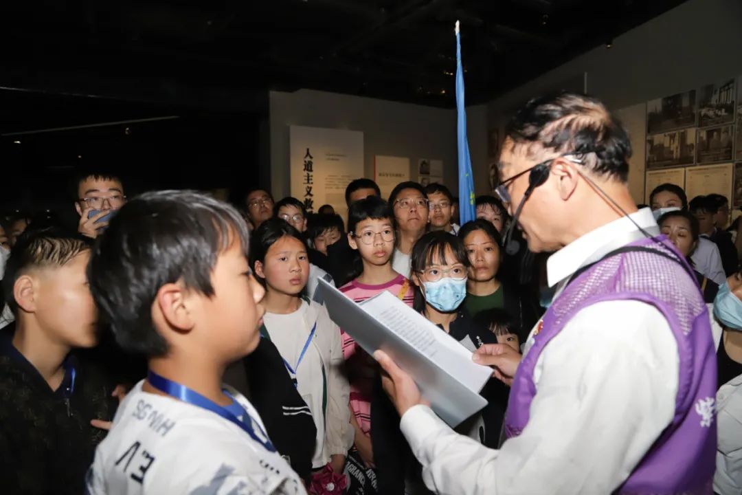 今天上午,纪念馆迎来一批特殊的参观者。他们是安徽省马鞍山市和县乌江镇卜陈学校的41名留守儿童。在96岁乡村退休教师叶连平爷爷的资助下,孩子们冒着大雨来到纪念馆开展“大思政课”现场教学活动。师生们首先在悼念广场举行悼念仪式,向遇难同胞敬献花圈。随后,大家在纪念馆讲解员带领下,参观了《南京大屠杀史实展》。