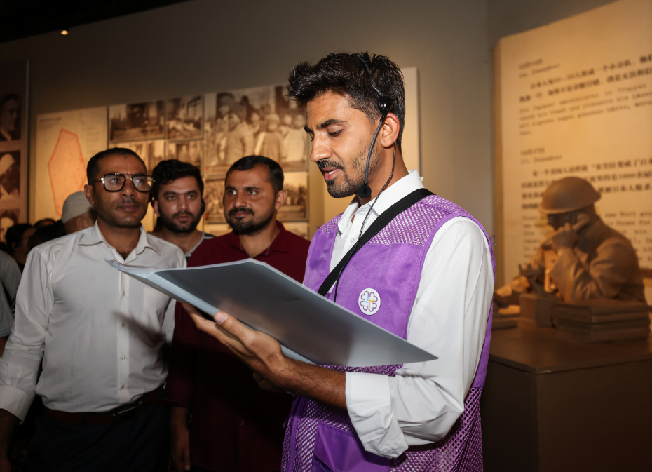 在展厅第四部分,来自巴基斯坦的国际志愿者迈德朗读了《拉贝日记》节选。他特别强调:“没有和平就没有未来。”基于中巴两国的友好关系,迈德在巴基斯坦就了解南京大屠杀悲惨历史。此次在纪念馆实地参观后更加感同身受,更体会到了和平的重要性。“中国为全世界的和平作出了很大贡献,我希望世界能一直和平,希望这样的悲剧不再发生。”