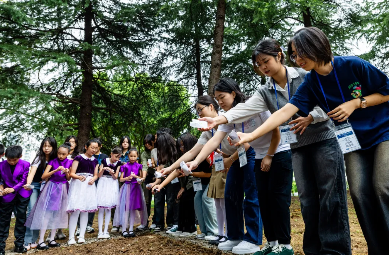 参加“唱响和平 播种未来”侵华日军南京大屠杀遇难同胞纪念馆2024年国际和平日主题教育活动。合唱团团员与来自11个国家的130多名中外青少年一起,以歌声传递和平愿景,播撒紫金草花种,铭记历史、共话和平!