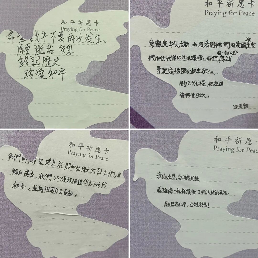 “铭记历史,珍爱和平”“以史为鉴,吾辈自强”…… 每一句质朴的留言,都凝聚着港澳青少年对历史的思考与新时代青年的担当。这面花语墙,也成为他们铭记历史创伤、向往和平未来的生动见证。