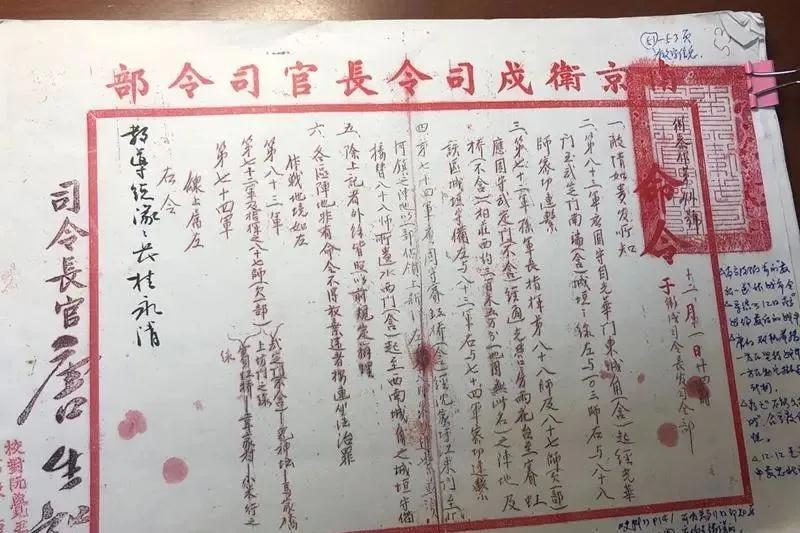 南京保卫战最后一道作战命令复印件