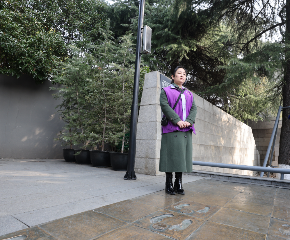 Xia Yuan is also an inheritor of the history of the Nanjing Massacre. She has listened to years of stories about the unfortunate childhood of her grandmother Xia Shuqin since she was young. Standing beside the bronze footprints of her grandmother, Xia Yuan spoke about her misfortune to the visitors. Today Xia Yuan, together with her thirteen-year-old son, acts as an inheritor of the historical memories of the Nanjing Massacre and has taken up the baton to preserve the memories of the massacre.