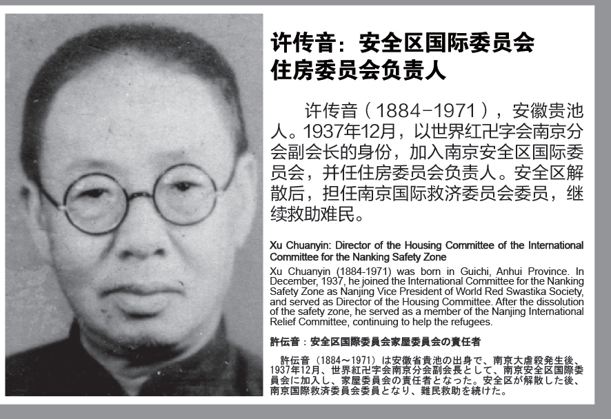 In fact, in addition to those foreigners, about 1,500 Chinese people also played a role in saving the refugees. Among them were managers and grassroots-level personnel at the International Committee for the Nanking Safety Zone, as well as personnel from the International Committee coordinating agencies. They risked their lives to support the refugees even if they suffered a lot.