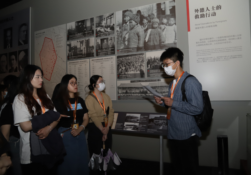 Afterwards, the young people visited the historical facts exhibition to learn more about the Nanjing Massacre. “Hong Kong and Macao compatriots are of the same blood with the Mainland people. I was deeply touched when I learned about the deeds of the martyrs fighting the invading foreign enemies in the war years,” said Huang Shihao from Hong Kong.