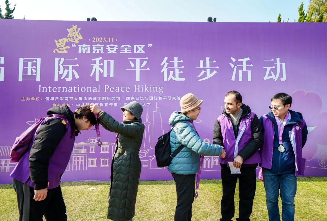 Worth noting is this hiking activity has attracted participation from many young people. Yi Fei (transliteration), from Moldova, is an exchange student in Nanjing Normal University and took part in the hike for the first time. After visiting the history gallery of the Drum Tower Hospital, he learned about lots of humanitarian deeds during the Nanjing Massacre. As he picked up Zijin Cao petals at each historical site, he felt he was picking up historical memories, which he said would be etched in his heart forever.
