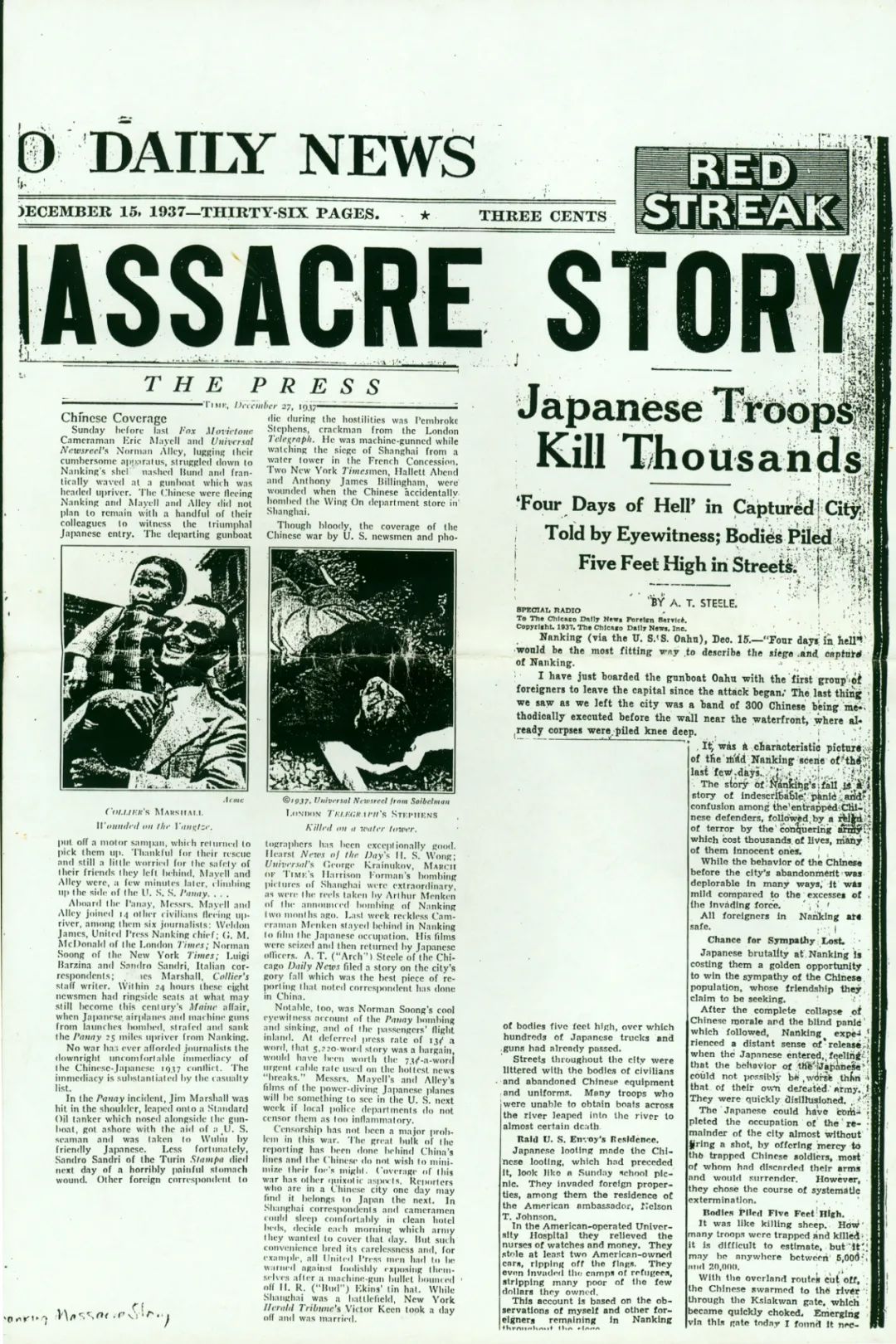 Archibald Trojan Steele of The Chicago Daily News had been reporting from the frontlines during the Battle of Nanking. When the Japanese army invaded the city on December 13, 1937, Steele and four other Western reporters still chose to stay, recording the dark moments they witnessed.