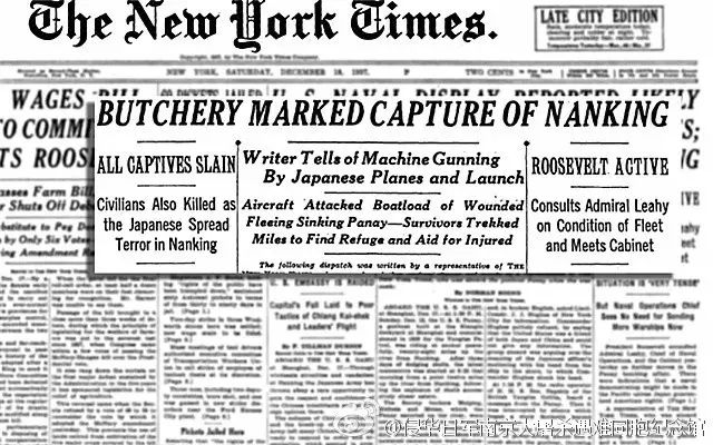 Frank Tillman Durdin of The New York Times was the first journalist who used the term that meant a massacre. On December 18, 1937, Durdin cabled a dispatch via radio on a US gunboat, with the banners “Butchery Marked Capture of Nanking – All Captives Slain. Civilians Also Killed as the Japanese Spread Terror in Nanking”. The article was printed on the front page of The New York Times.