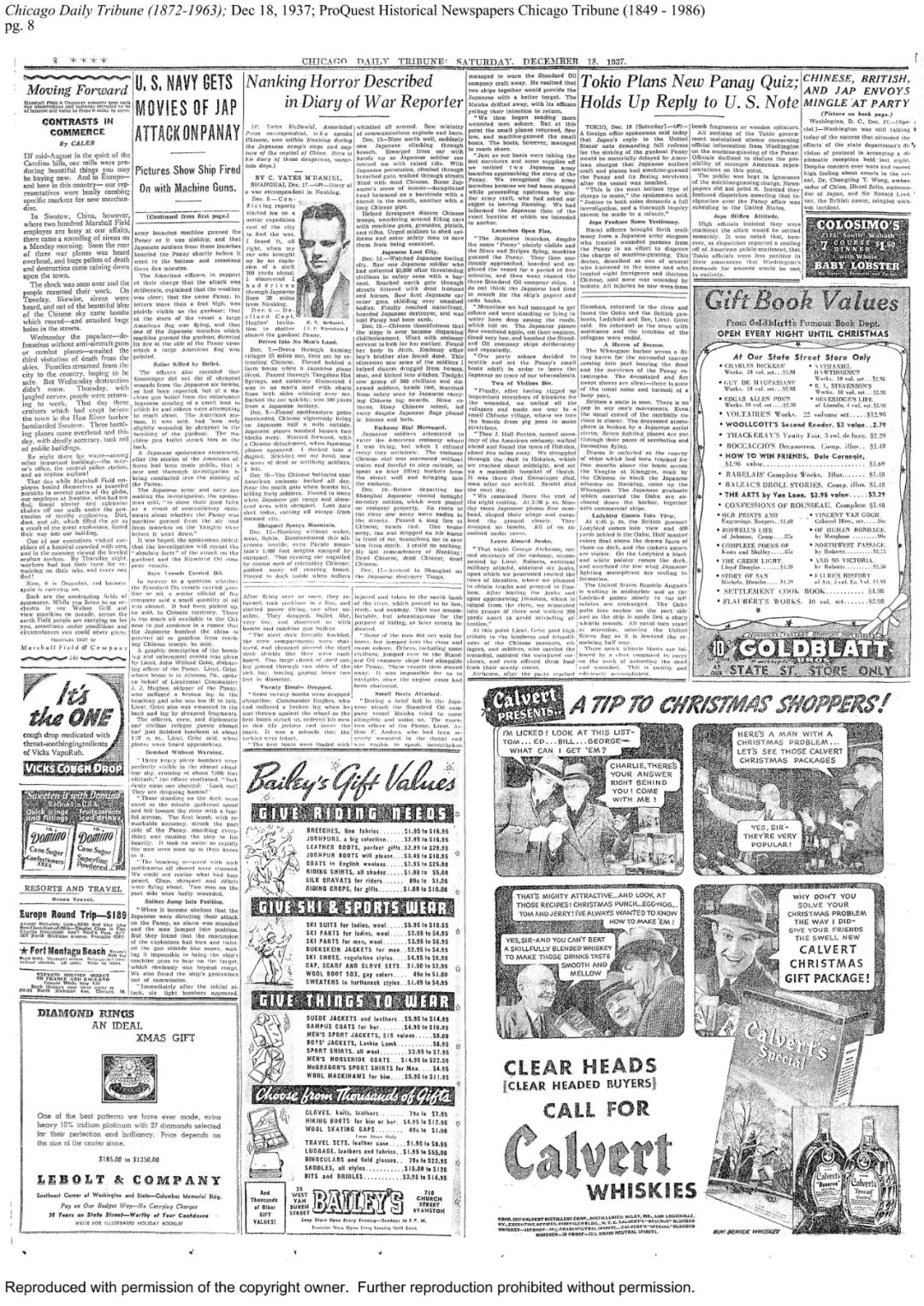 The report on the Nanjing Massacre by Arthur von Briesen Menken published on The Chicago Daily Tribune on December 17, 1937