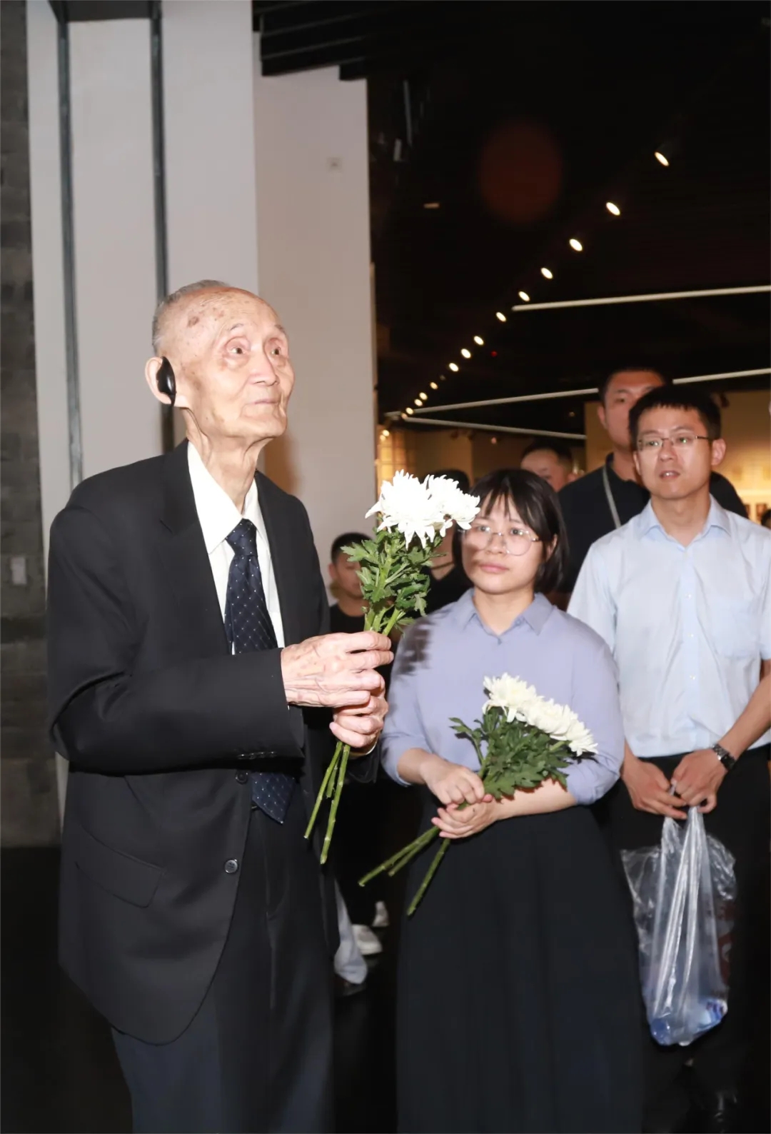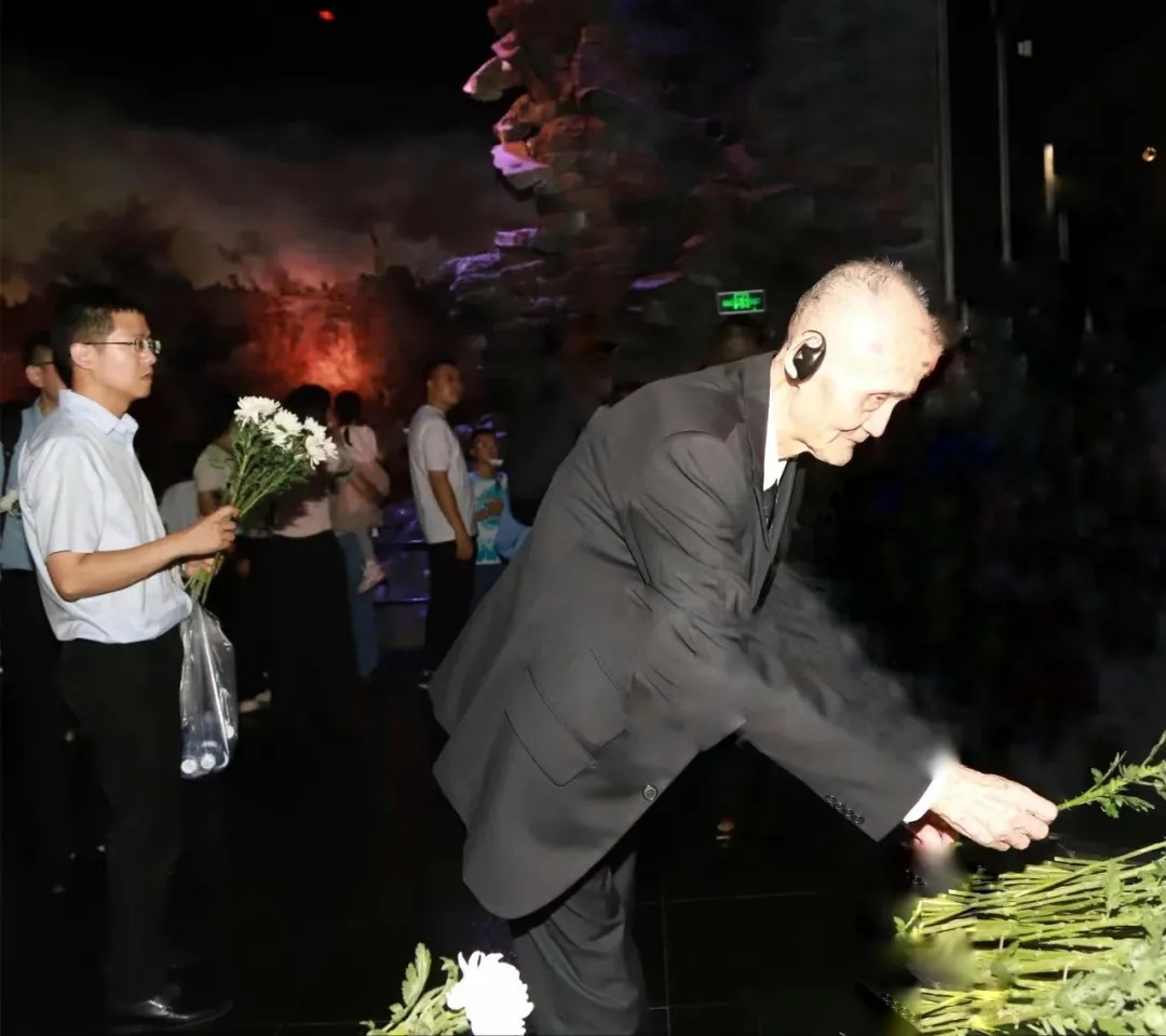 While visiting the Prologue area, Mr. Gao stood silently,his brow furrowed as he gazed at the photos of Nanjing Massacre survivors lining the walls. His face clouded with a somber expression when he sawimagesdocumenting the atrocities committed by Japanese invaders. At the wall listing the names of soldiers who sacrificed their lives during the Battle of Nanking, he offered chrysanthemums and rendered a solemn salute.