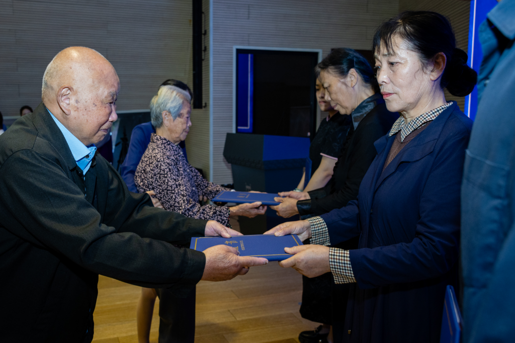 Survivors Ai Yiying and Liu Minsheng Present Certificates to the Historical Memory Inheritors