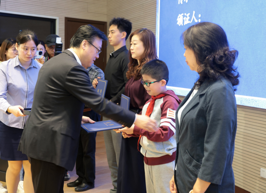 Nine-year-old Yu Tianxiang, a "post-00s generation" student, is the youngestinheritor in this batch. "I hope that my son will gain courage and responsibility and become a responsible person by participating in the historical memory inheritance activities. In the future, he will act as a young storyteller, sharing our family’s story with his classmates. He will also come to participate in volunteer activities at the Memorial Hall to call on more people at his age to remember history." Ren Ying said.