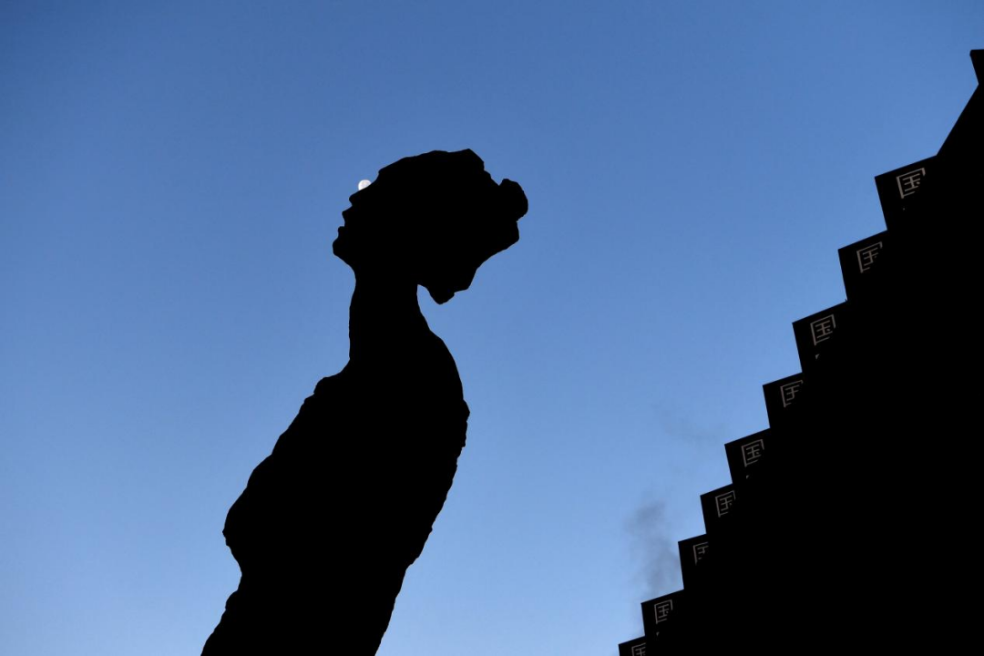 In the early morning of December 13, 2022, the moon resembled a teardrop resting in the corner of the eye of the statue of “Mother” in the Memorial Hall.