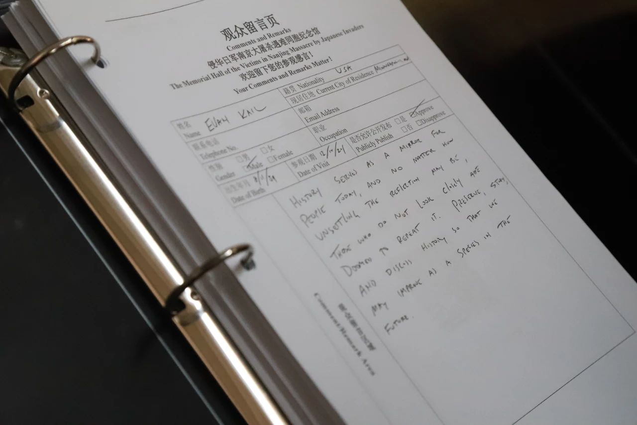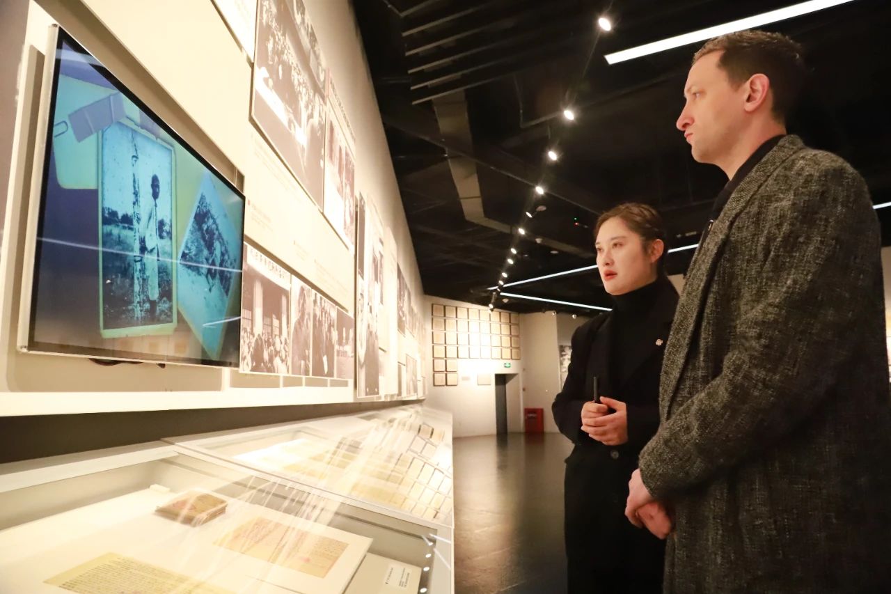 Evan Kail also visited the Mourning Square and the site of “Mass Grave of 10,000 Corpses.” He laid white chrysanthemums at the Memorial Square for Nanjing Massacre victims. In the “Voices of Remembrance” reading event, Evan recited the diary entry from December 3, 1937, written by Robert Wilson, the only surgeon in Nanjing during the Massacre. In the Zijin Grass Peace Cultural Innovation Area, he stamped the commemorative book Inscribed in Memory with the “Disintegration of families” and peace sculpture seals, embedding the historical memory of the Nanjing Massacre and his hope for peace in his heart.