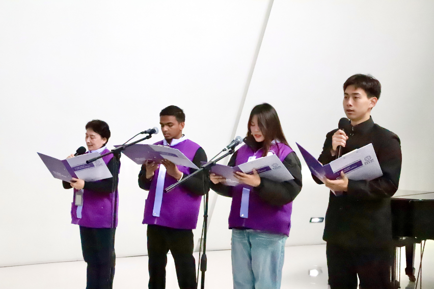In the audience rest area of theHistorical Materials Exhibit Hall, Zhao Manyan from Bangladesh recited the poem Zijin Grass for visitors.