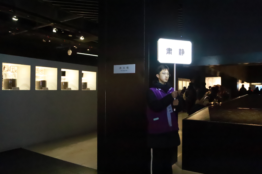 After the ceremony, volunteers took their posts. At the exhibit hall entrance, post-2000s volunteers held signs reminding visitors to maintain a respectful atmosphere. At the John Rabe statue, international volunteers recited diary excerpts from historical eyewitnesses. In the Historical Materials Exhibit Hall, new members of the oral guide volunteer team practiced their scripts and learned the visitor flow routes.... Through their actions, they are living embodiments of the spirit of Lei Feng.
