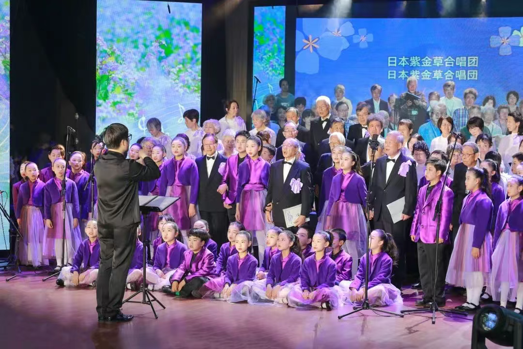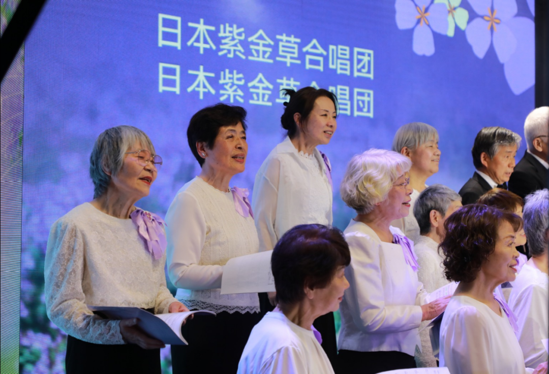 Chinese and Japanese Zijin Grass Choirs perform together to sing the voice of peace.