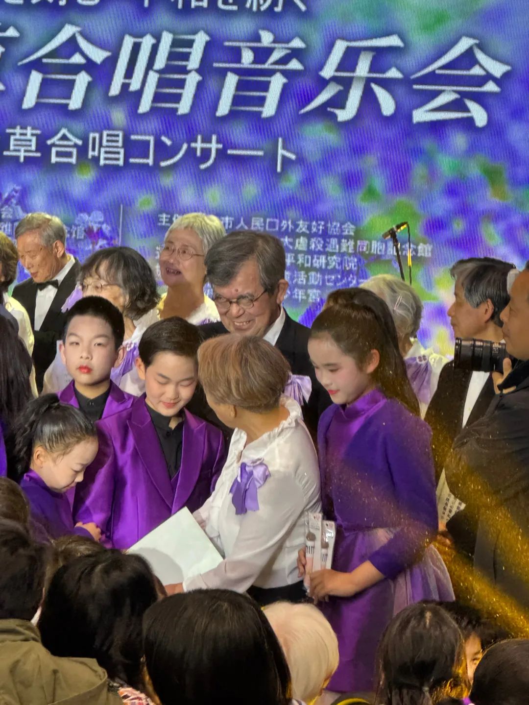 As the final note of the chorus of "The Flower of Peace, Zijin Grass", was sung on stage, the elderly Japanese man with white hair warmly embraced the Chinese children. This scene was heartwarming and profoundly moving, striking a chord with the audience, many of whom couldn't help but shed tears of emotion.