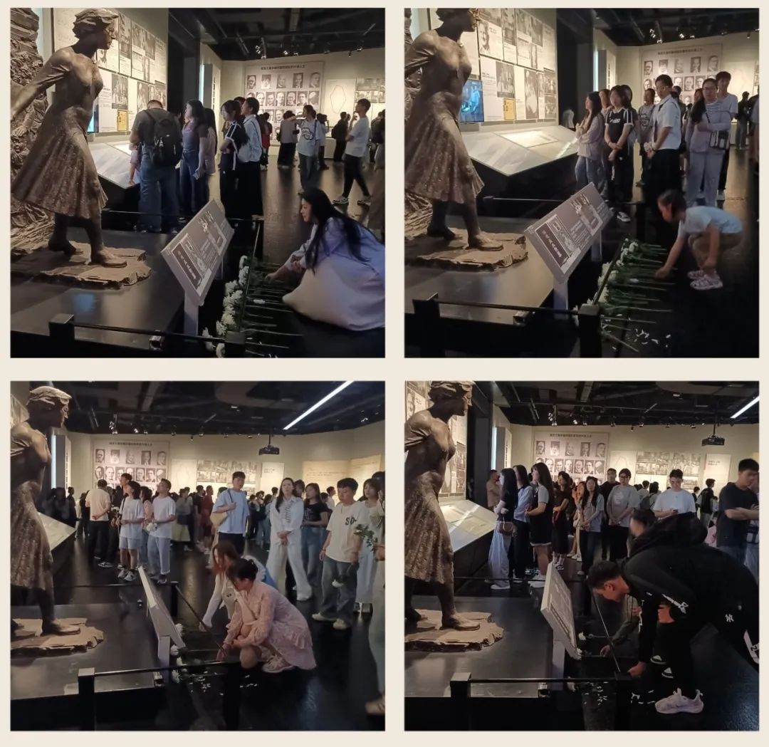 This morning, in front of the statue of Minnie Vautrin at the "Nanjing Massacre Exhibit," visitors spontaneously laid chrysanthemums, her favorite flowers in life.
