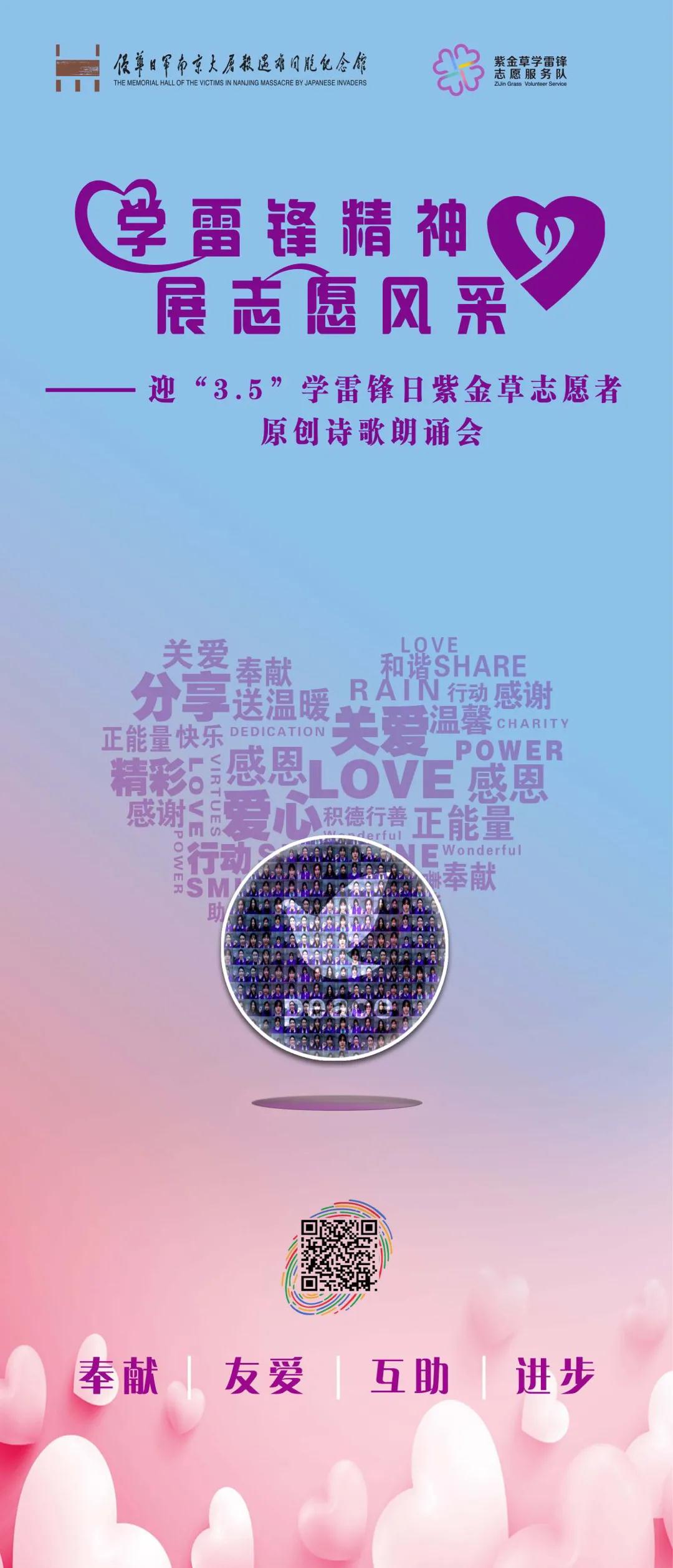 今天上午,紫金草志愿者原创诗歌朗诵会在我馆展厅和平寄语墙前举行。国际志愿者、社会志愿者、大学生志愿者代表以朗诵原创诗歌的方式,弘扬雷锋精神,展现志愿者风采。