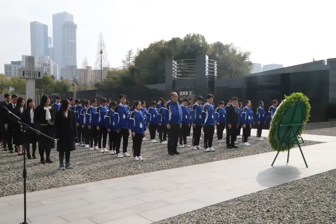 下午三点,师生们在纪念馆灾难广场举行敬献花圈、默哀仪式。纪念馆讲解员为大家介绍了公祭广场、灾难之墙、国家公祭鼎、和平大钟的故事。