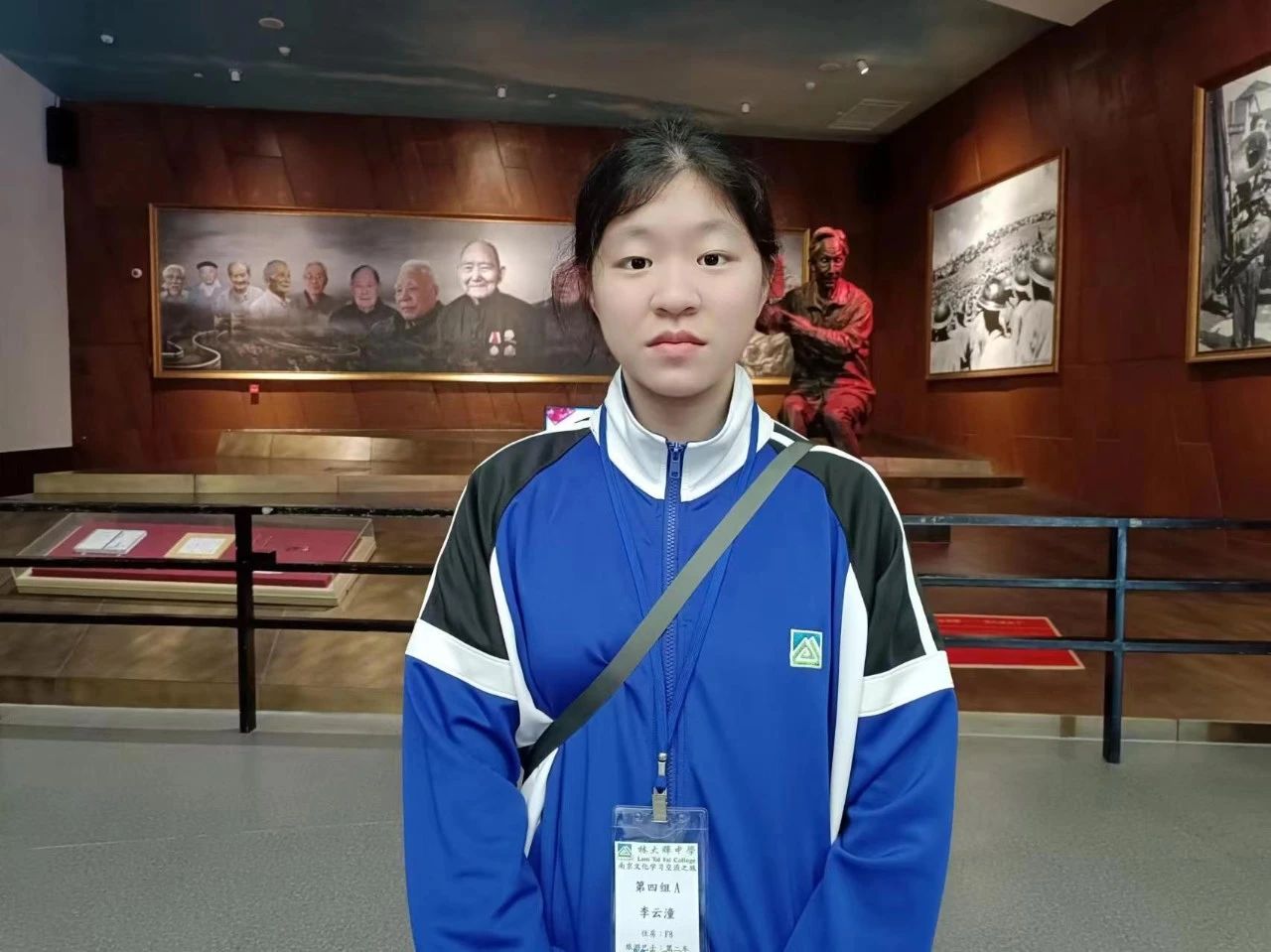 香港林大辉中学高一(e)班李云潼在参观后说:“这是我第一次参观纪念馆,看到了小学时在历史书上学到的南京大屠杀历史。那些真实的录像、照片、文字展现在眼前,我感到很悲痛。”她说,在展厅内看到当年很多外籍人士留下来帮助中国难民,让她感觉这个世界依然有很多有大爱的人。“希望世界没有悲痛,永远和平下去!”李云潼最后说。