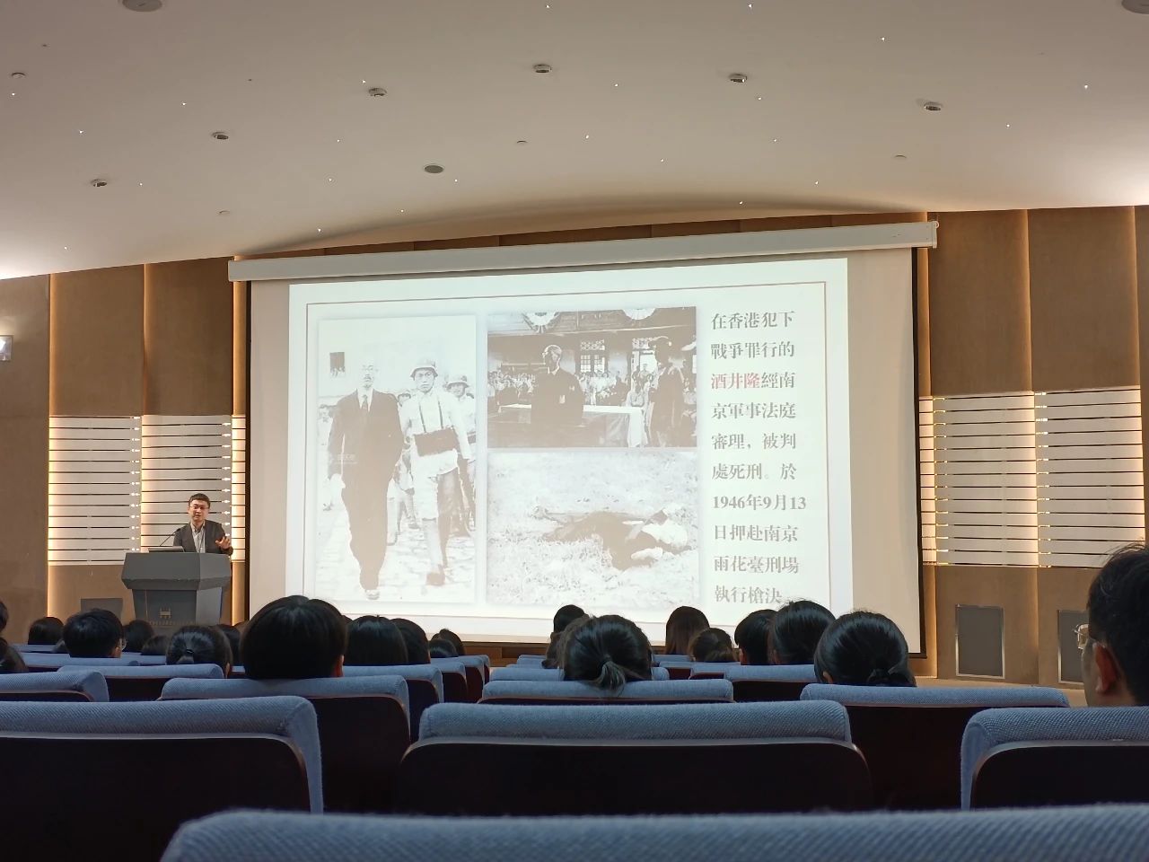 南京大学历史学院香港研究所所长孙杨以《全民族抗战与香港同胞的家国情怀》为题,为大家讲座。他说香港同胞自古以来和中国内地人民经历了共有的历史。他举例介绍了很多历史人物历史事件,令学生们印象深刻。