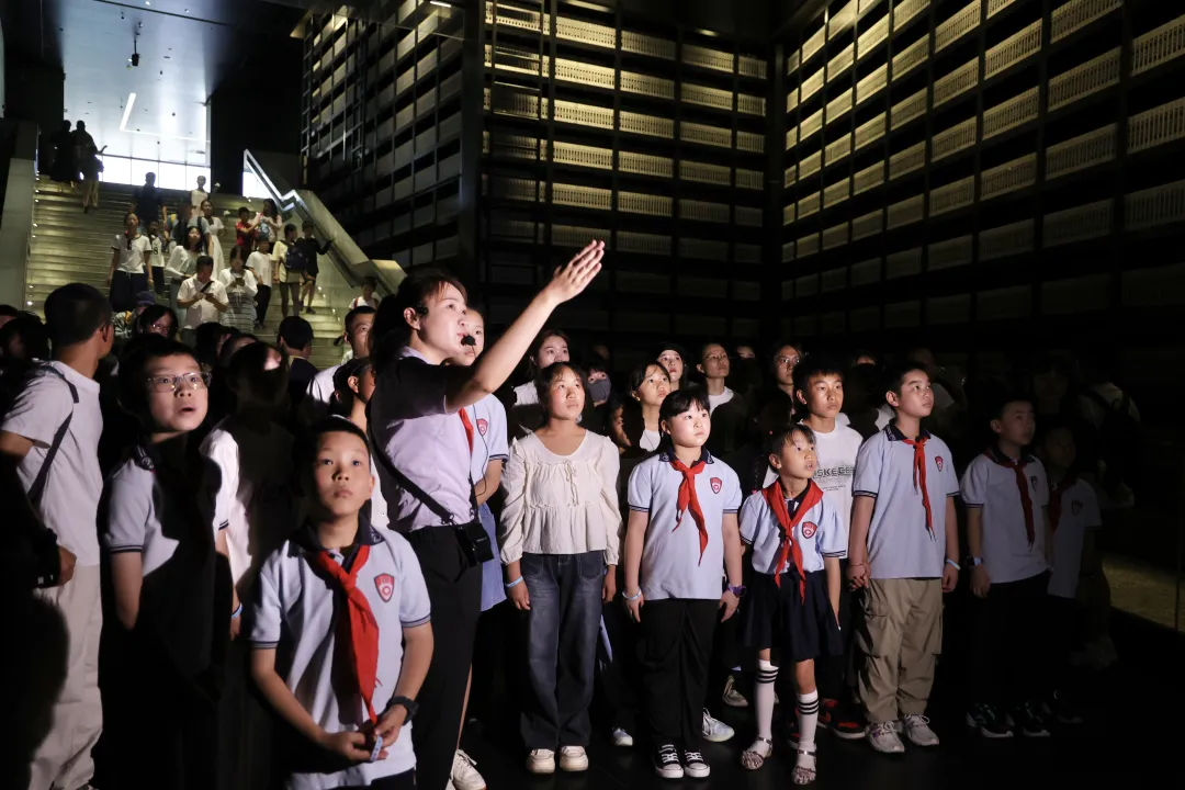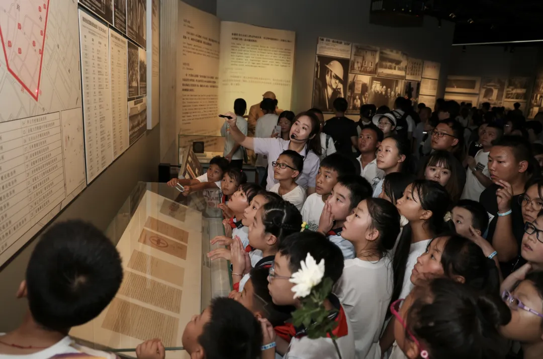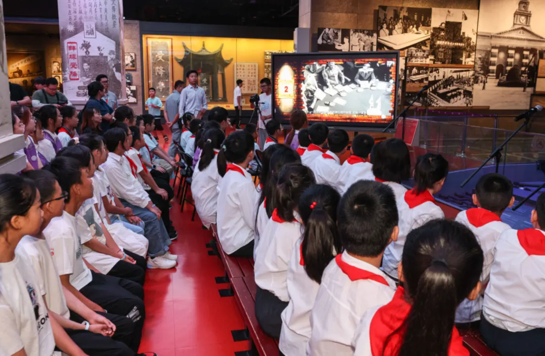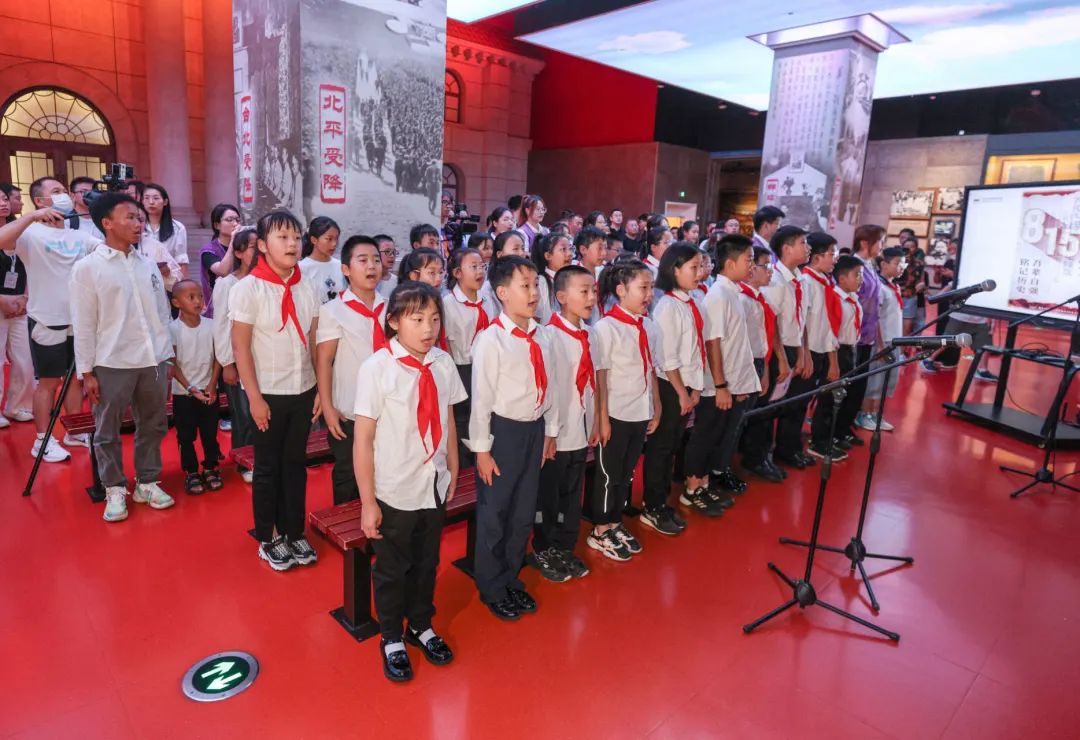 今天上午,纪念馆在“三个必胜”展厅“中国战区日本投降签字典礼会场”场景复原处举办纪念“8·15日本宣布无条件投降79周年”主题教育活动。南京大屠杀幸存者后代代表、青少年学生代表、大学生志愿者代表、云南山区青少年等50人参加了活动。