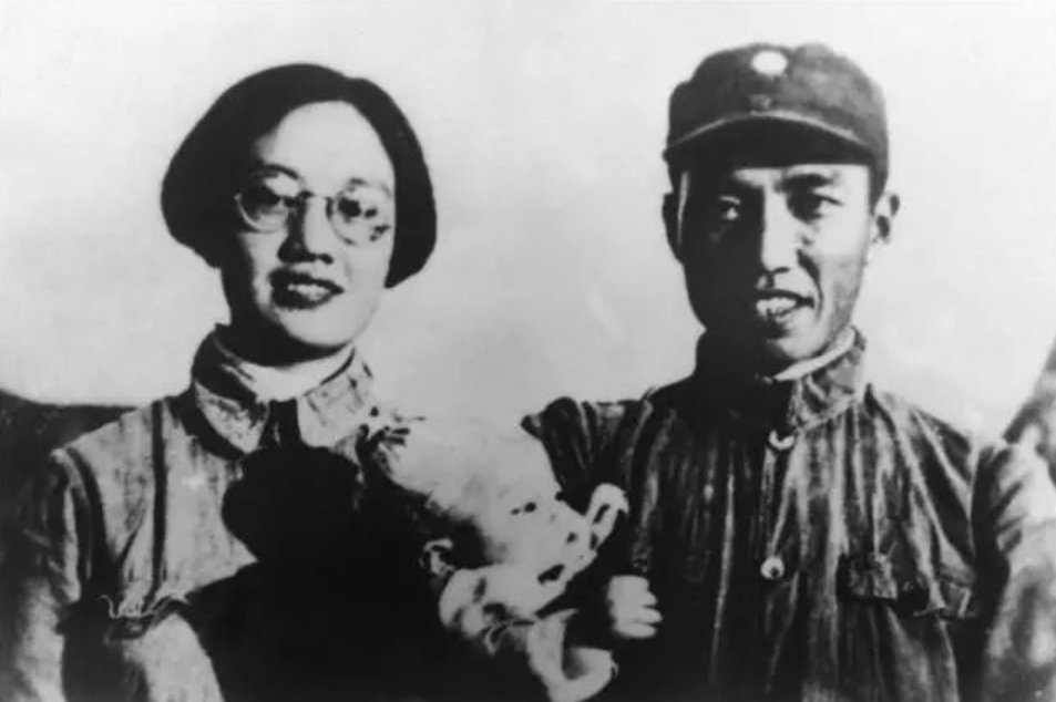 左权与妻子刘志兰、女儿左太北合影