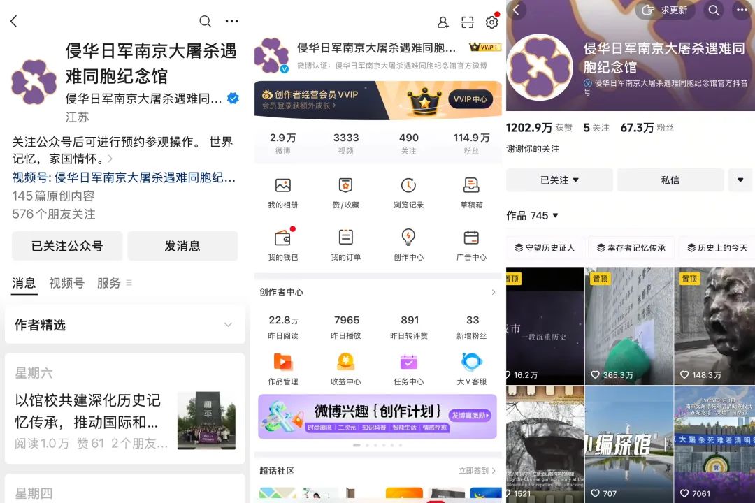 纪念馆部分自媒体平台