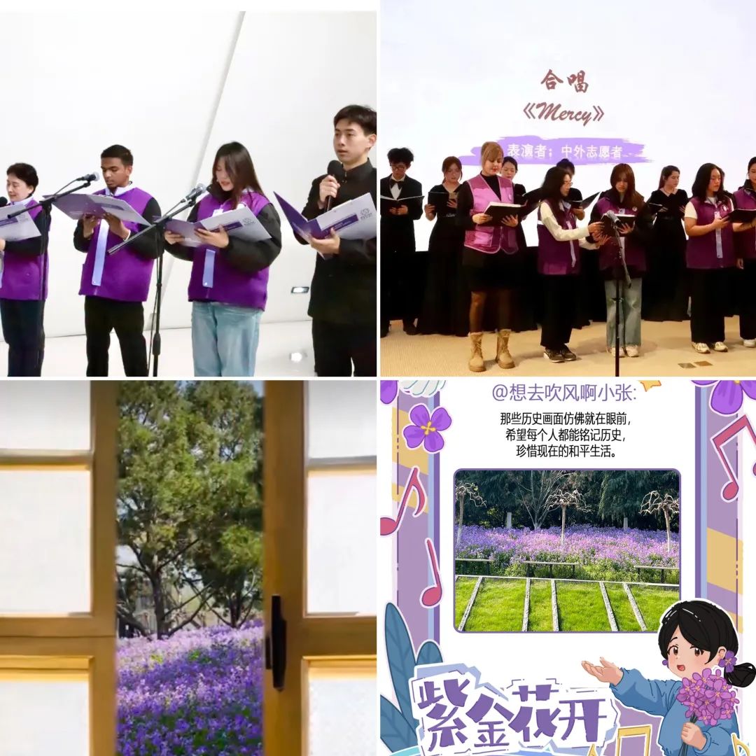 从“紫金花开”志愿者表彰活动到紫金草国际和平学校;从“紫金草互动视频”到“紫金草照片征集活动”……通过线上线下联动,让紫金草“铭记历史 珍爱和平”的理念触达更多人群。