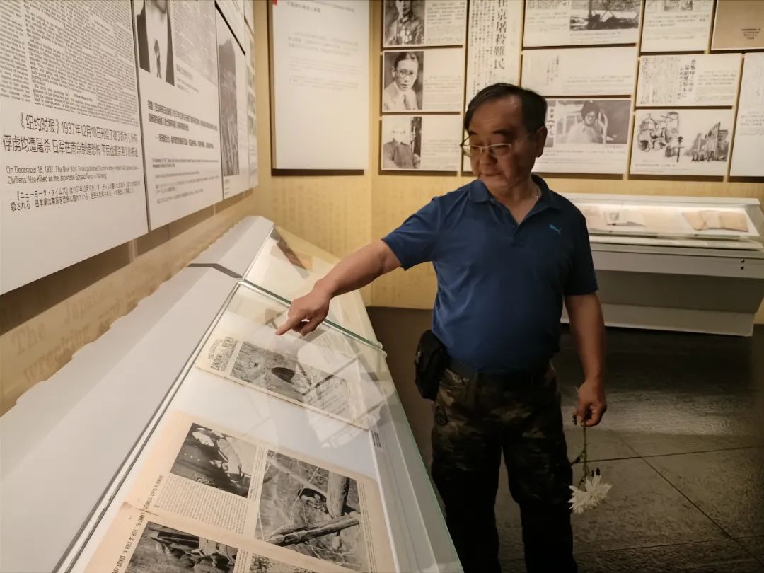 鲁照宁指着展柜内1937年12月14日美国《芝加哥每日论坛》有关“百人斩”的报道说:“第一次见到西方媒体对‘百人斩’杀人竞赛进行了同步报道。我2023年把这份报纸捐赠给纪念馆,现在就被展览出来,让海内外的观众看到,我觉得我做的事情很有价值。让史料回归南京,给纪念馆保管,一方面用于史料研究,一方面让越来越多的观众看到历史真相,我再苦也值得。”