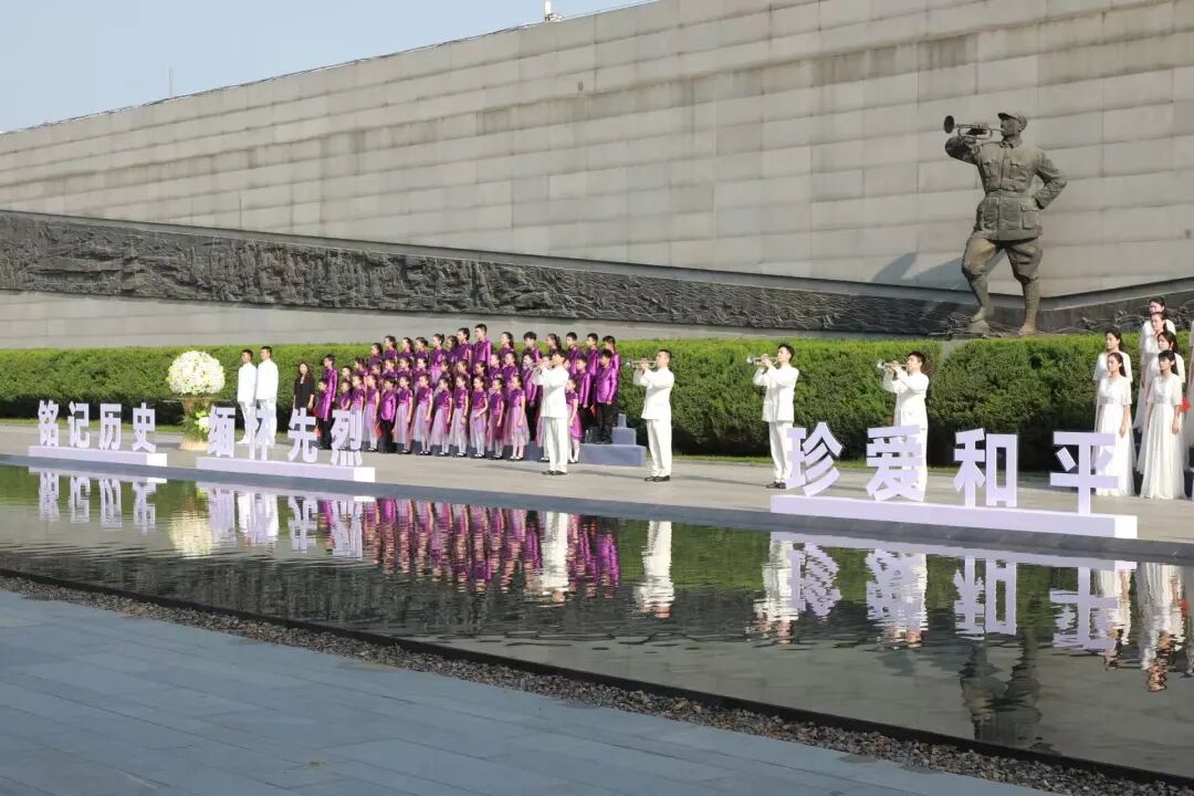 下午,纪念馆举行“以邮鉴史 祈愿和平”纪念邮票首发式、“铭记·传承·奋进——献给胜利的青春强音”青少年短视频演讲征集活动启动仪式。中国邮政发行《中国人民抗日战争暨世界反法西斯战争胜利八十周年》纪念邮票,并捐赠纪念馆。江苏省报业协会、江苏法治报社、纪念馆面向海内外青少年征集演讲短视频,让新一代铭记抗战历史,传承伟大抗战精神。