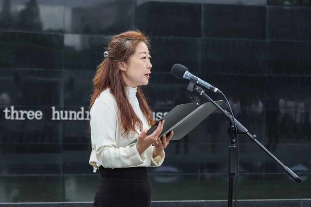 幸存者薛玉娟的外孙女、第三批南京大屠杀历史记忆传承人任颖现场发言:“我深深敬佩像我外婆那样的幸存者,他们背负着刻骨的伤痛,以毕生之力讲述历史真相,警示和教育后人:勿忘历史,珍爱和平!”她说:“如今幸存者渐渐老去,作为后代,我们应接过传承历史记忆的接力棒,呼吁人们守护来之不易的和平与安宁。”